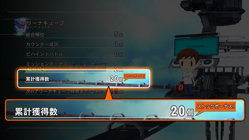ARENA予告期間~開始までの間、一定のプレー回数に応じてその回のARENAモード初回プレー時に追加分として使える「ストックアリーナキューブ」が登場!