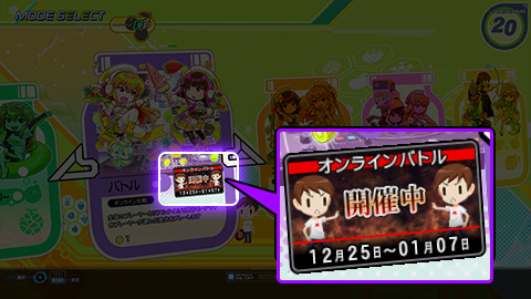 開催状況はモードセレクト画面に表示されますので、逃さずに参加しましょう!