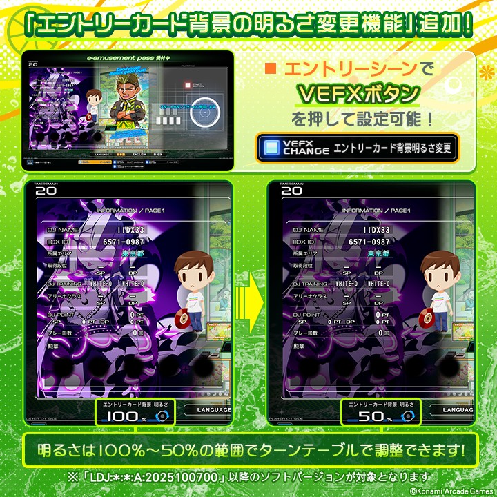10月7日(火)より順次配信中のアップデートにて「エントリーカード背景の明るさ変更機能」を追加!