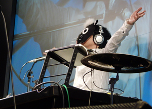 DJブースから降り、太鼓(?)を手にステージを駆けまわるDJ TOTTOさん!