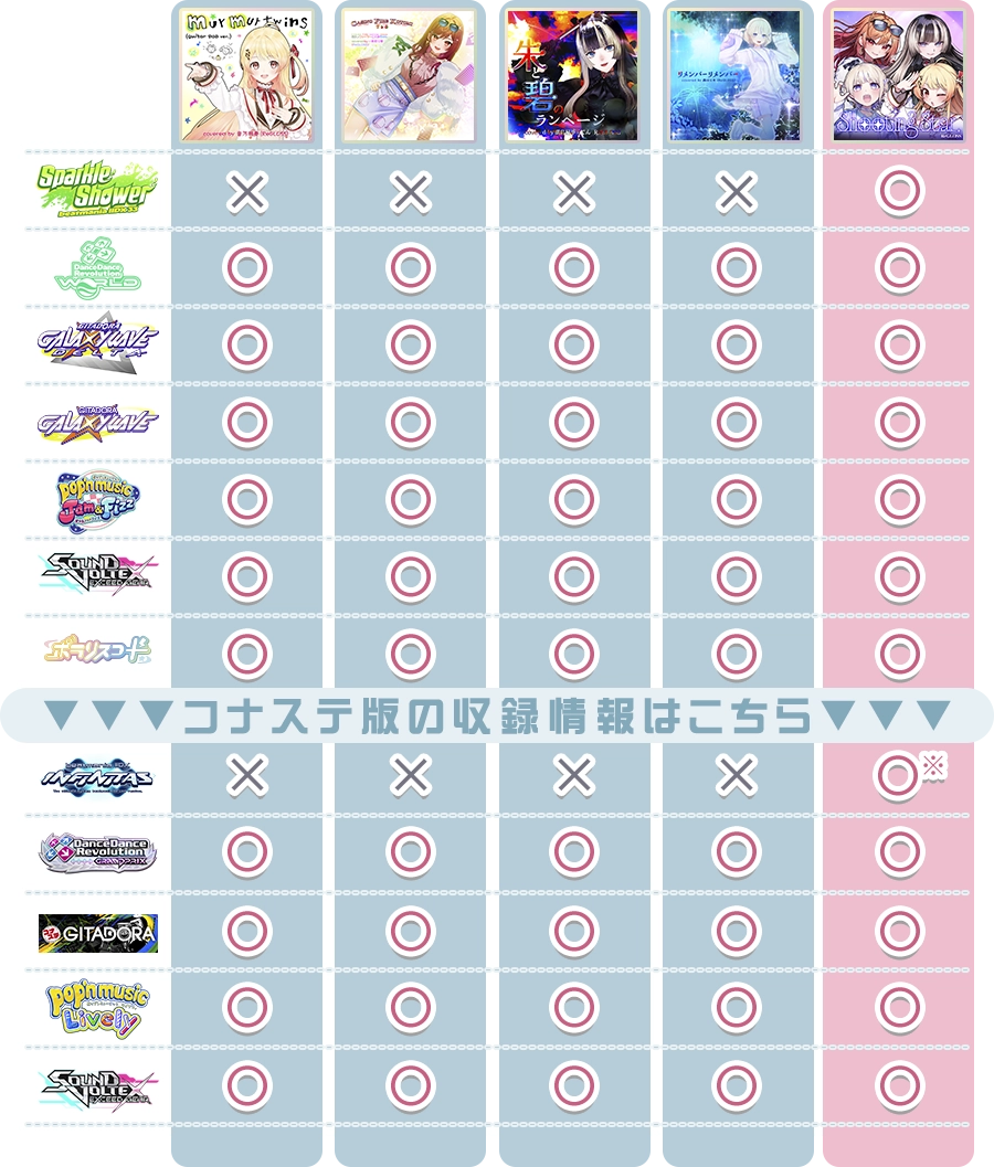 - beatmania IIDX INFINITASは楽曲配信が後日実施されます。詳しくは機種公式サイトをご確認ください。