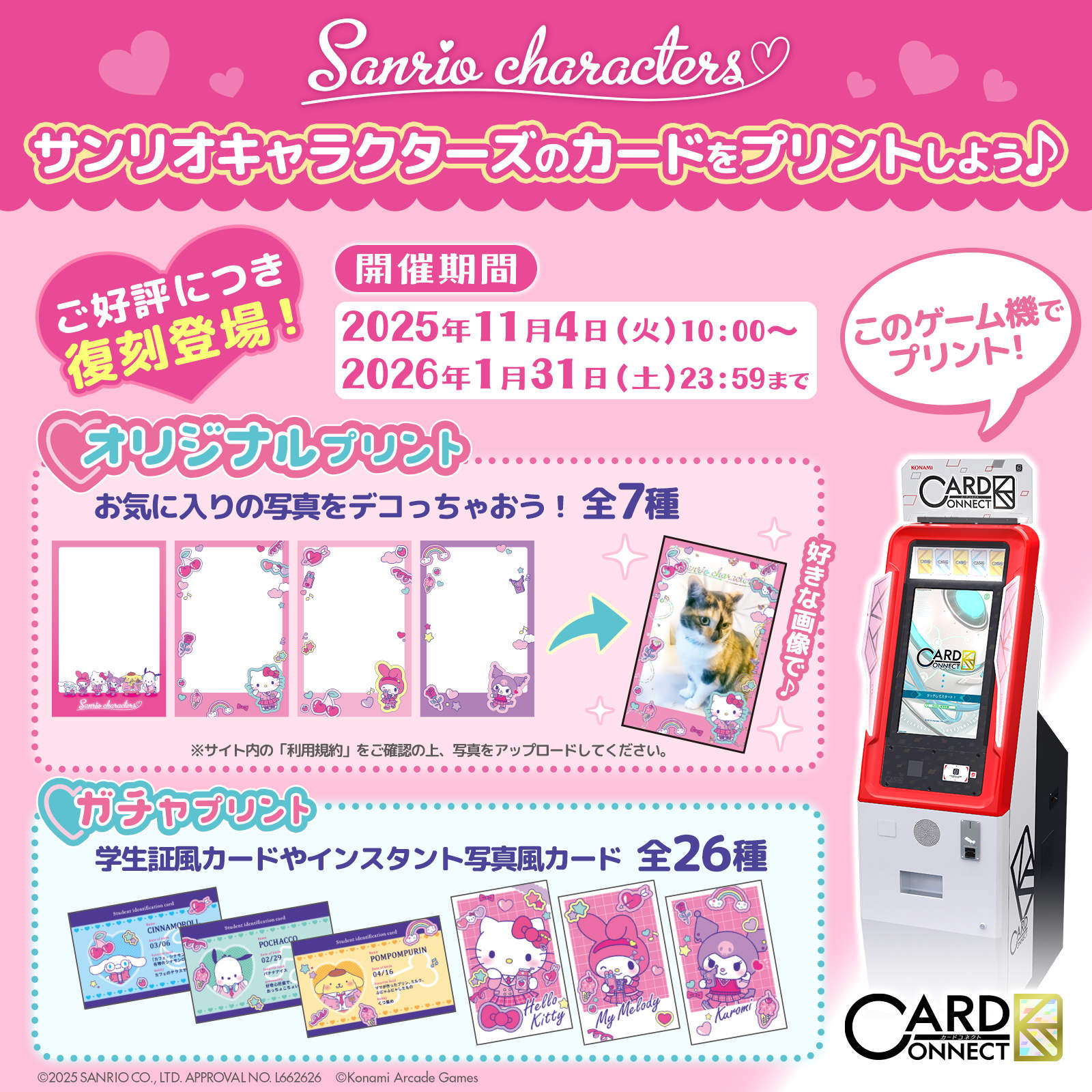 お知らせ春のコナステ大感謝祭2025開催!2025.03.13参加機種から衣装を交換したキャラクターたちがセレクトプリントで登場!好きな子を選んでプリントできるのん♪