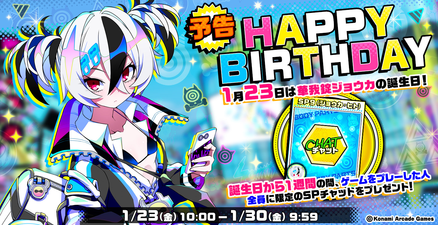 誕生日をお祝いして、1/23(金) 10:00~1/30(金) 9:59 の期間にプレーをすると