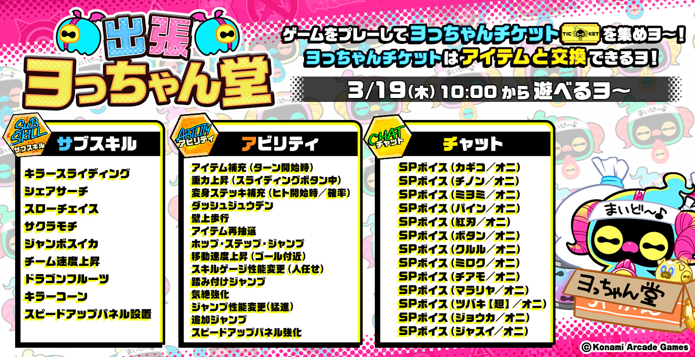 「ヨっちゃんチケット」を集めて色々なアイテムと交換しよう。