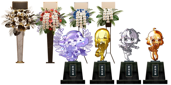 一定期間、対象店舗の対局モード選択画面に、トッププレーヤーの名入りフラワースタンドが飾られるようになります。また、店舗ランキングの順位に応じてフラワースタンドの種類が変化します。