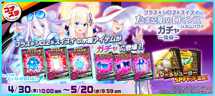 ・以下のアーケード版にて開催したガチャで追加されたアイテムはコナステ版のガチャからは排出されませんのでご了承ください。