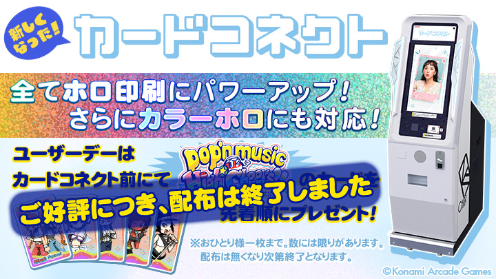 pop'n music公式Xとカードコネクト公式Xのフォロワー限定で、プレゼントします。