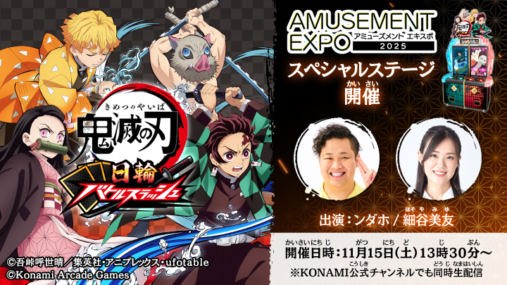『鬼滅の刃 日輪バトルスラッシュ』アミューズメント エキスポ 2025 スペシャルステージ!このコミックを原作にした映像作品として2019年4月よりテレビアニメの放送がスタート。