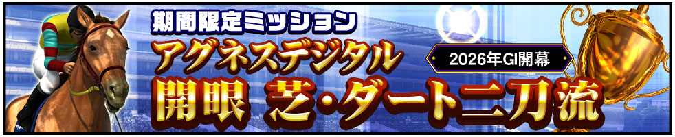 この期間限定ミッションは、名馬の足跡を追うミッションとなっており、各ミッションをクリアすると、競走馬の育成に役立つアイテムを獲得することができます。