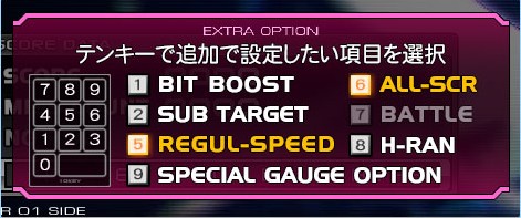 プレミアムパス特典限定の新たなオプションとして、段位ゲージと侵蝕ゲージを設定することができるようになります。特殊ゲージの設定方法 選曲画面のゲームオプションにて、テンキーの9を押すことで、特殊ゲージの設定ウィンドウを開きます。