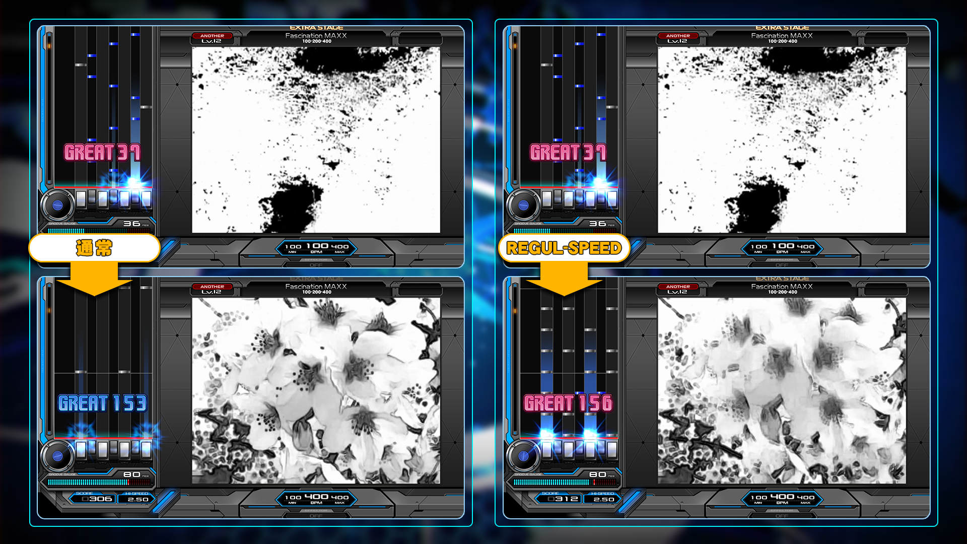 曲開始時のBPMをもとに譜面のスクロールスピードが決まり、その後のBPM変化の影響を受けないオプションです。