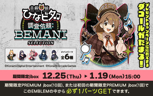本日より期間限定jbox「音戯探偵ひなビタ♫ 調査依頼:BEMANI・セレクション」が登場!