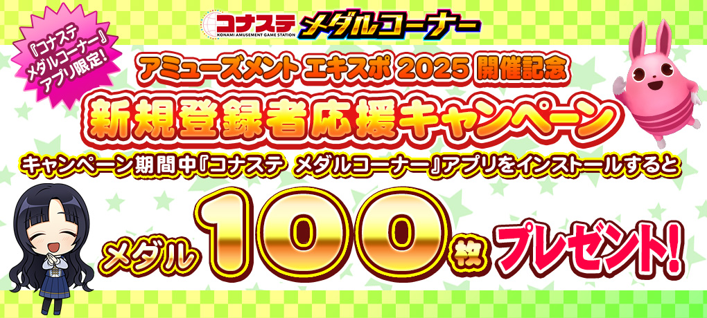 キャンペーン期間中に『コナステ メダルコーナー』アプリを新規でインストールすることでメダル100枚を獲得できます。
