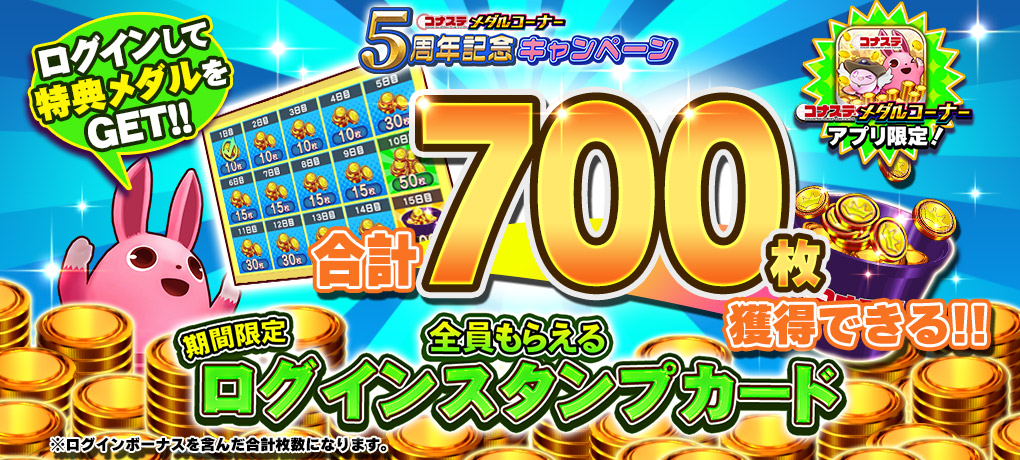 「コナステメダルコーナー」アプリに毎日ログインして、メダルをゲットしよう!