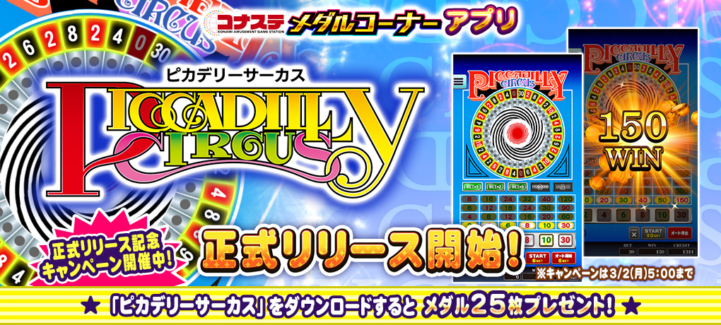 本日より、『コナステ メダルコーナー』アプリにて「ピカデリーサーカス」を正式リリースいたしました。