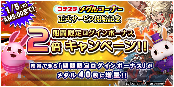 この度、「コナステ メダルコーナー」正式オープン開始を記念して、「期間限定ログインボーナス 2倍キャンペーン」を実施いたします。
