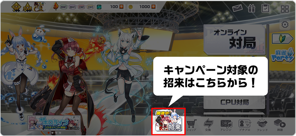 麻雀格闘倶楽部Spで対象の招来をしてMPをためよう!| モード | 獲得MP |