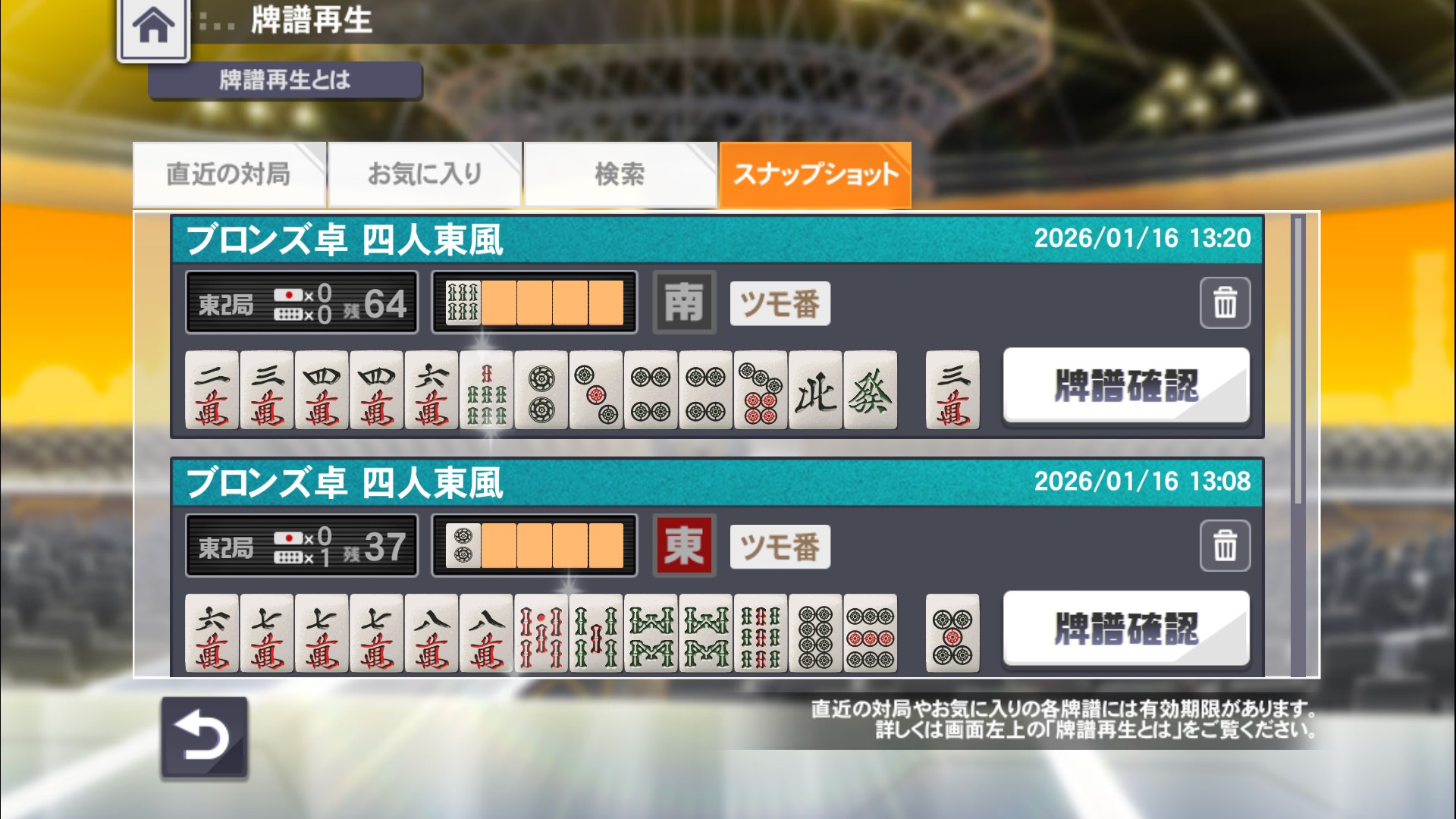 - 牌譜には有効期限があり、古いものから定期的に削除されていきます。