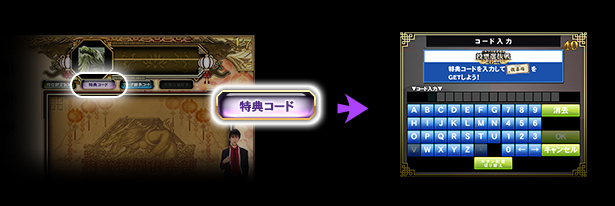 ③モード選択画面の「特典コード」ボタンを押してコードを入力する