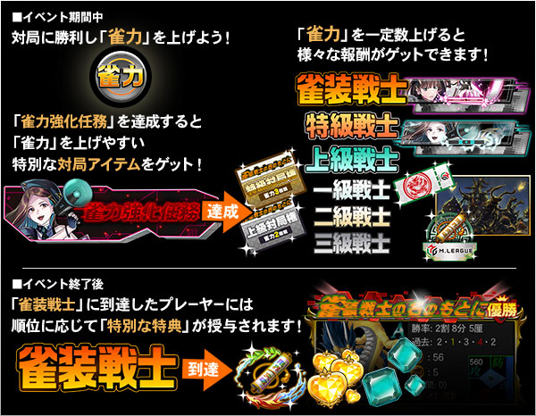 称号「雀装戦士」に到達したプレーヤーにはイベント終了後、順位に応じて「特別な特典」が授与されます!