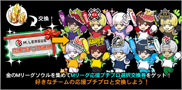 金のMリーグソウルを集めてMリーグ応援プチプロ選択交換券をゲット!