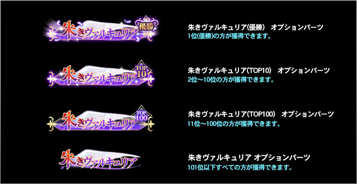 イベント「朱きヴァルキュリア」にて入賞順位に応じて以下の報酬がゲットできます。