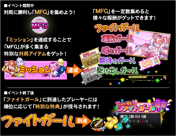 (2)目指せ!No.1ファイトガール!対局に勝利し「MFG」を集めよう!