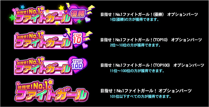 イベント「目指せ!No.1ファイトガール!」にて称号「ファイトガール」に到達したプレーヤーは以下の報酬がゲットできます。