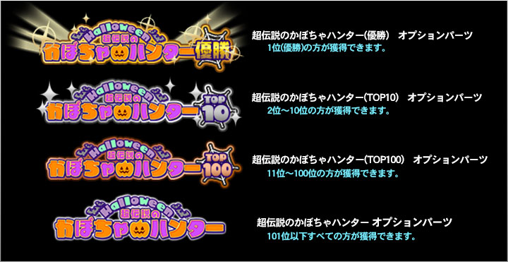 イベント「超伝説のかぼちゃハンター」にて称号「かぼちゃハンター」に到達したプレーヤーは以下の報酬がゲットできます。