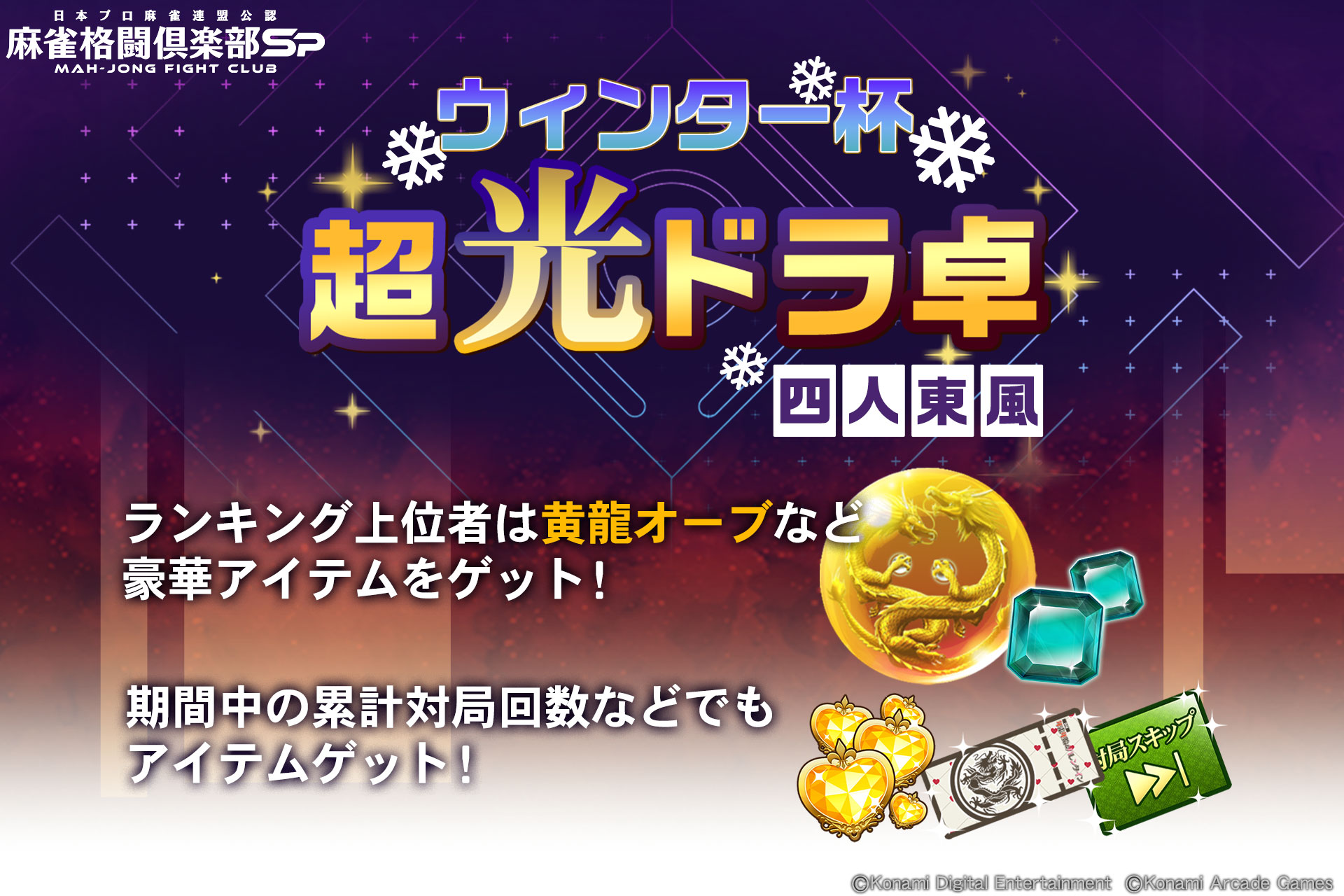 ウィンター杯 超光ドラ卓 四人東風開催!イベント上位入賞で豪華アイテムゲットを目指せ!