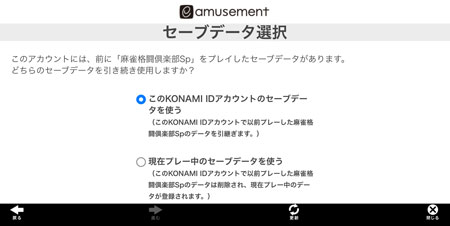 「このKONAMI IDアカウントのセーブデータを使う」を選択します。