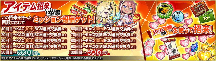 様々な豪華アイテムをゲットできるアイテム招来 KAC編を開催!