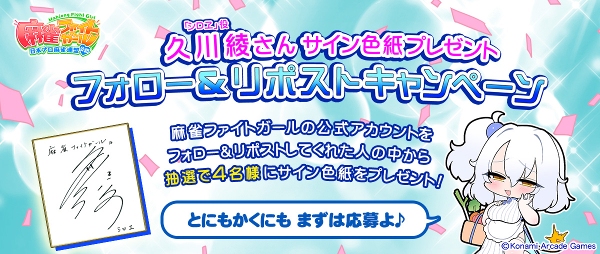 「シロヱ登場記念! CV 久川綾 さん サイン色紙プレゼント!フォロー&リポスト キャンペーン」応募要項