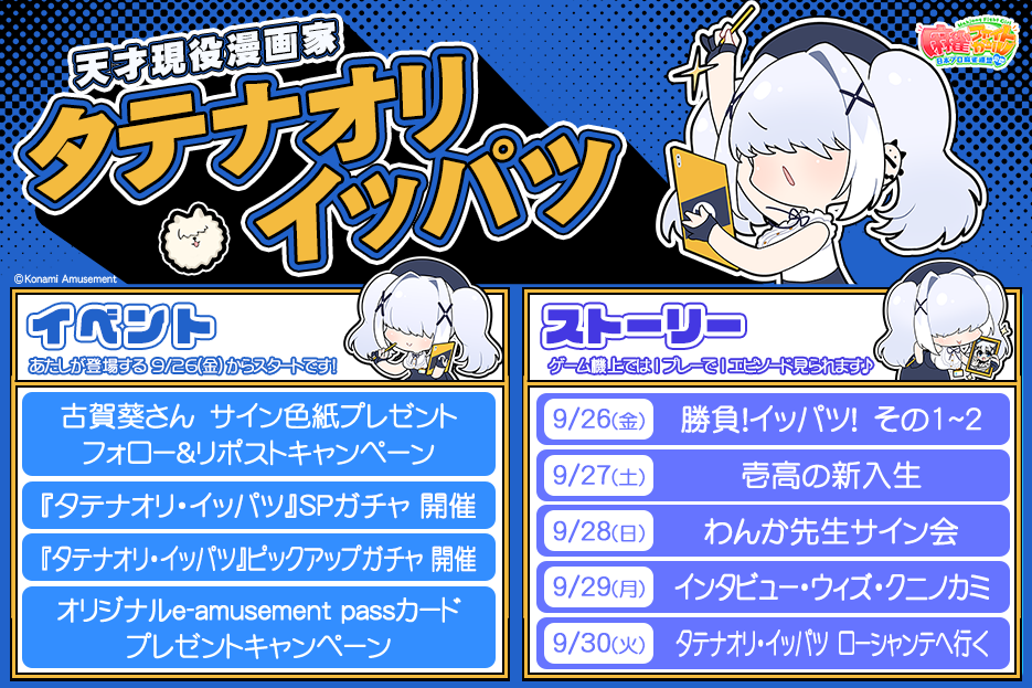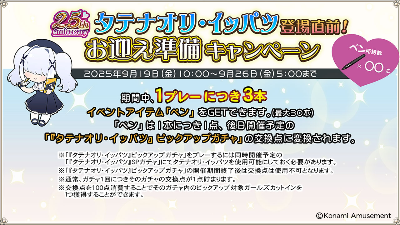 - 「タテナオリ・イッパツ」の一部カットインのプレミアムコース限定メモリアルプリントにつきましては、2025年10月中の追加を予定しております。