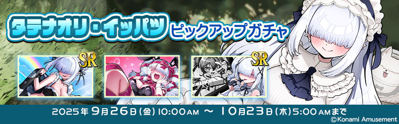 - 本ピックアップガチャをプレーするには「『タテナオリ・イッパツ』SPガチャ」にて「タテナオリ・イッパツ」を使用可能にしておく必要があります。