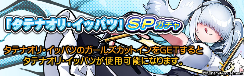 新ファイトガール「タテナオリ・イッパツ」の登場に合わせ、「『タテナオリ・イッパツ』SPガチャ」を開始いたします。