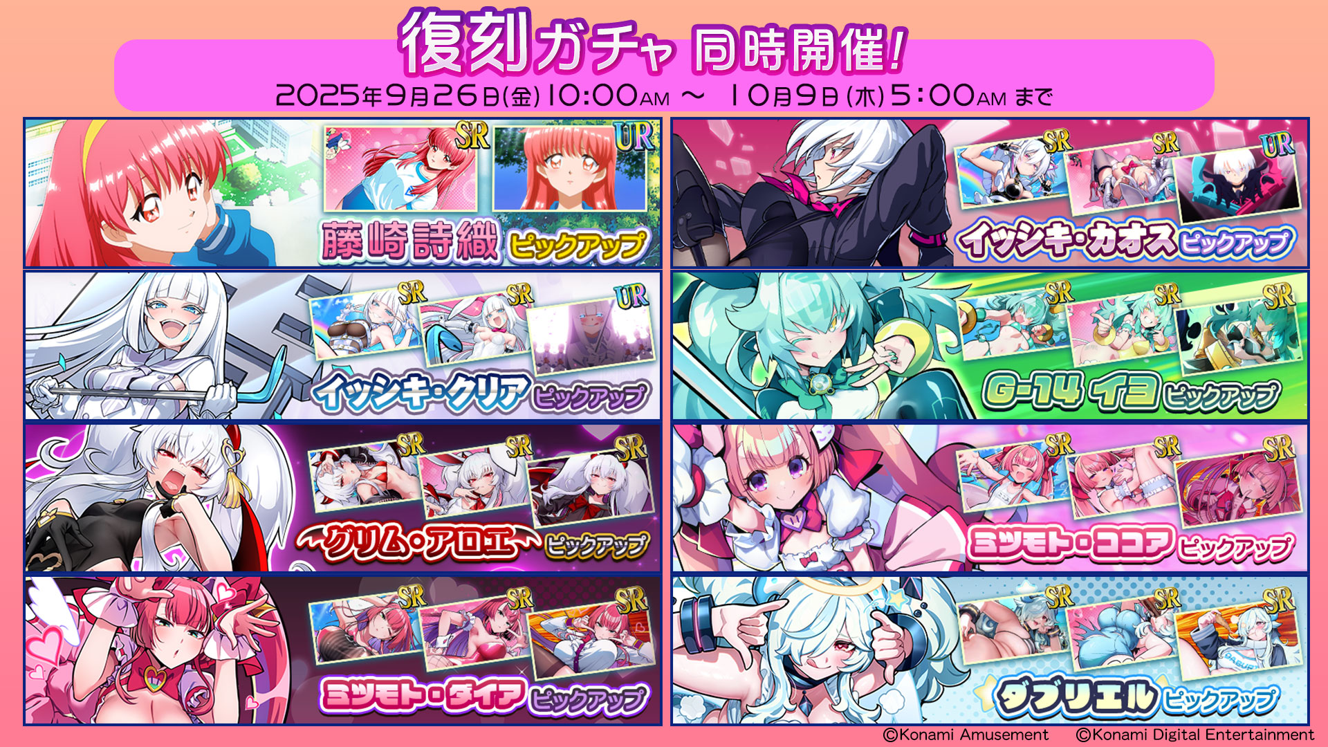 期間中、以下のピックアップガチャが復刻開催されます。