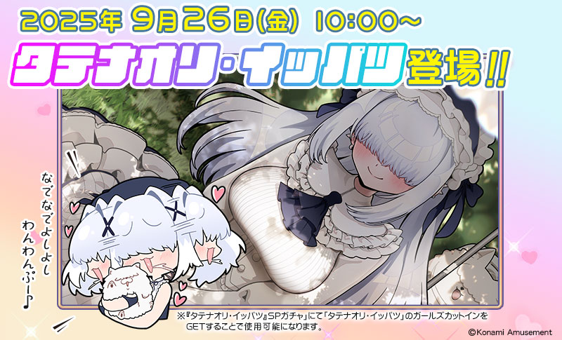 期間限定で「タテナオリ・イッパツ」のガールズカットインを獲得できるピックアップガチャを開催いたします。