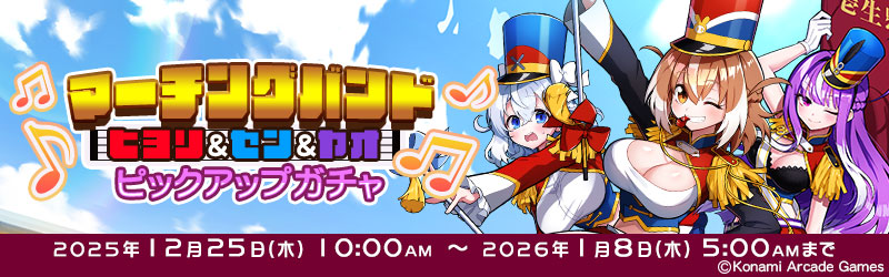 - 期間中にグッズプレゼントキャンペーンが開催される場合は本ピックアップガチャ開催前に告知致します。(他機種コラボ等を除く)