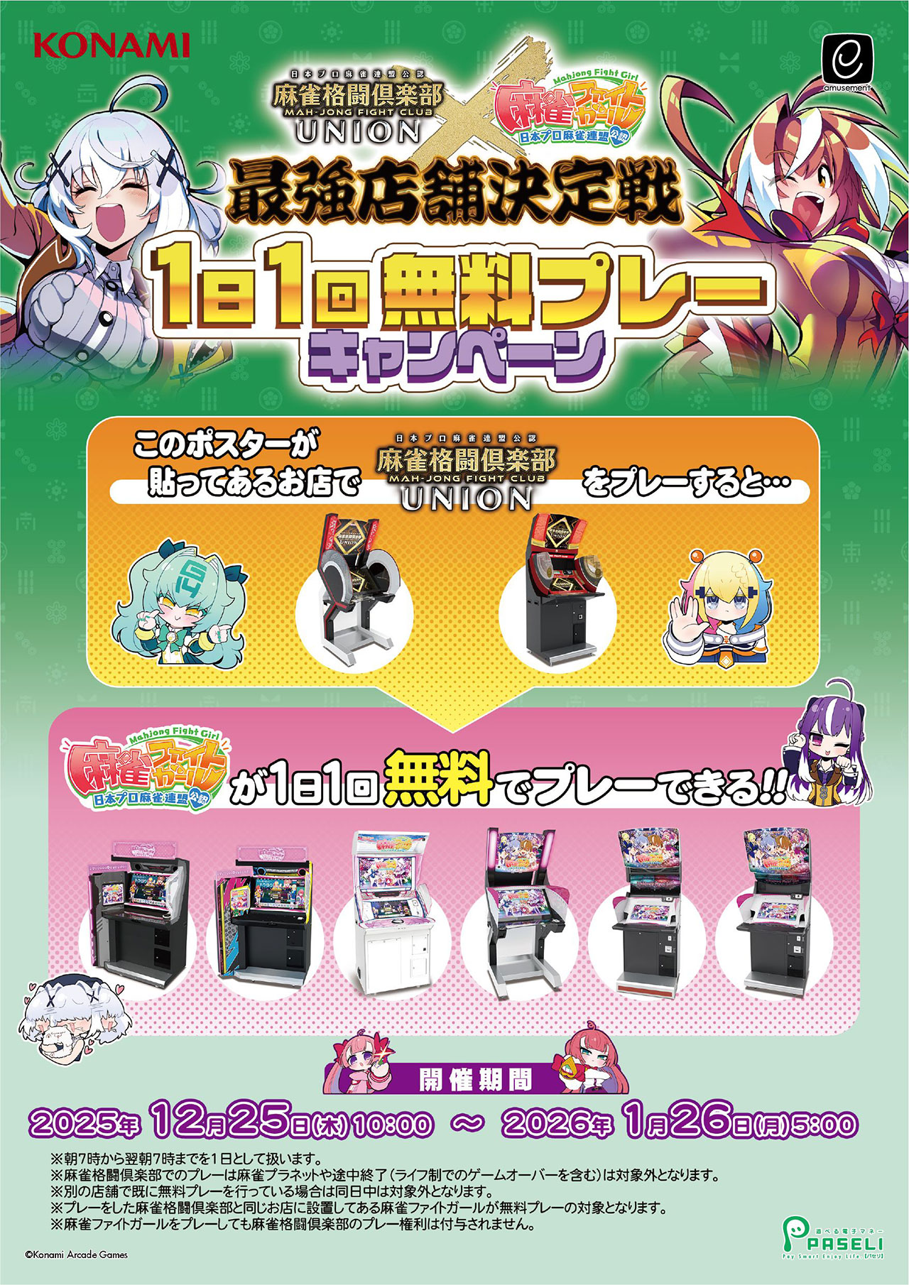 引き続き「麻雀ファイトガール」を宜しくお願いいたします。2025.12.16