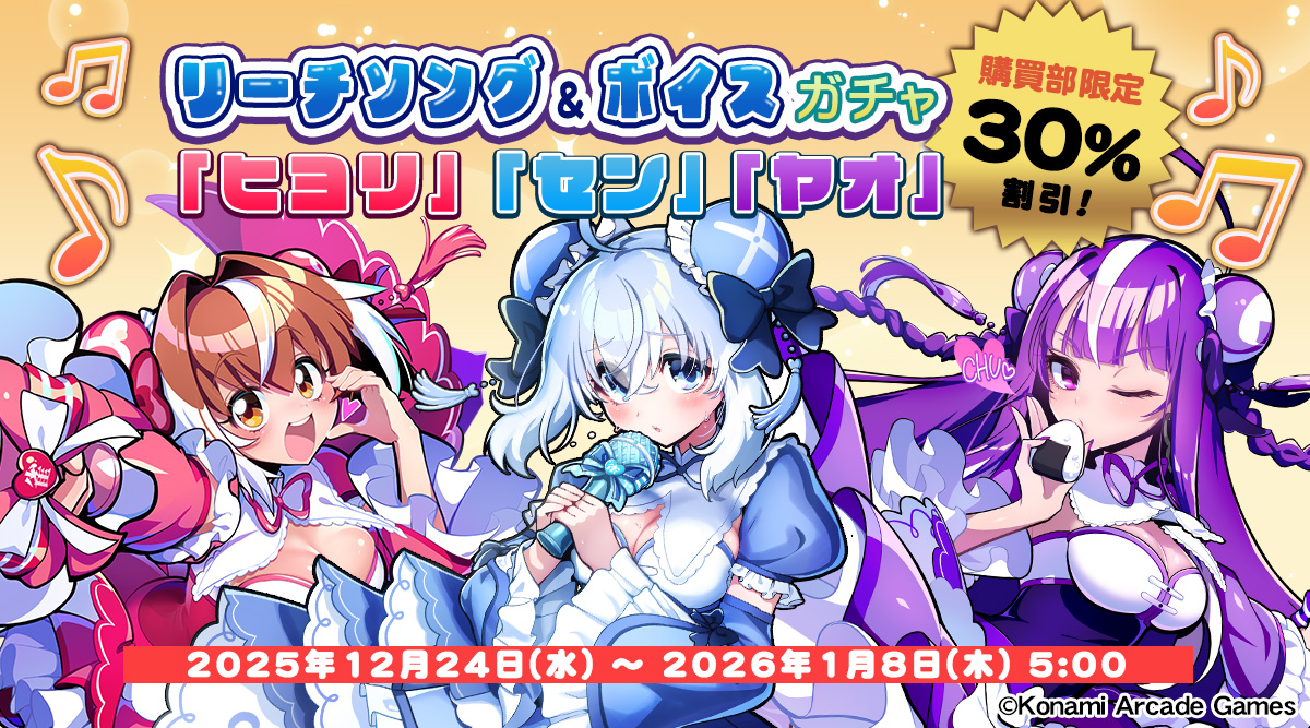 リーチソング&ボイスガチャ「ヒヨリ」「セン」「ヤオ」購買部30%割引