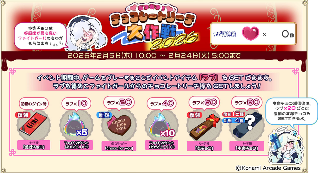 ラブを集めてファイトガールからのチョコレートリーチ棒をGETしましょう!