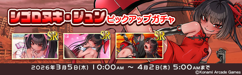 - 本ピックアップガチャをプレーするには「『シゴロヌキ・ジュン』SPガチャ」にて「シゴロヌキ・ジュン」を使用可能にしておく必要があります。