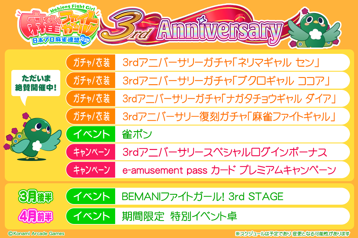 もういくつ寝ると麻雀ファイトガールは3周年!