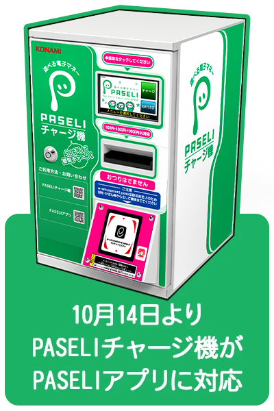PASELIアプリから現金でチャージできます。 PASELIチャージ機の詳しい説明、
