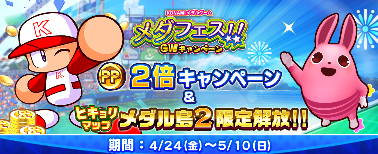 4/24~5/10までPP2倍キャンペーン&ヒキョリマップにメダル島2を限定解放!