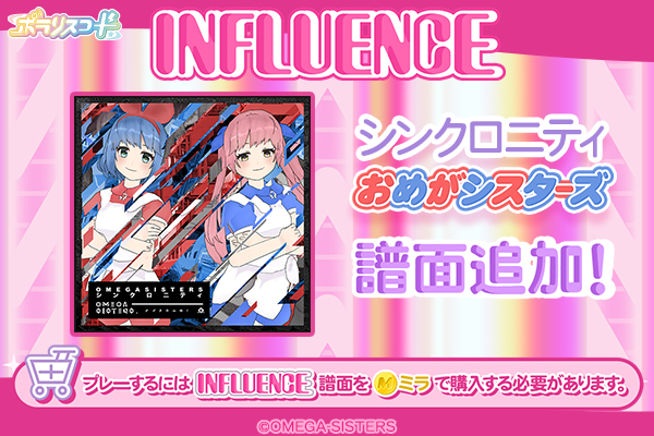 「シンクロニティ」にINFLUENCE譜面追加!やりごたえがパワーアップしたよ♪以下の手順で是非チャレンジしてみてね!