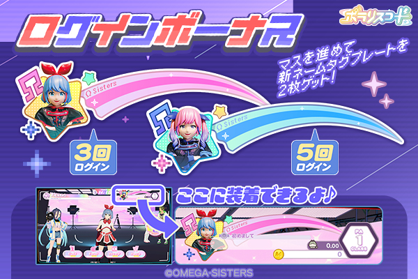 期間中3回・5回ログインすると、新しい特別なネームタグプレートが2枚ゲット出来る!好きをアピールしよう♪