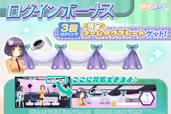 期間中3回ログインすると、特別なネームタグプレートがゲット出来る!好きをアピールしよう♪