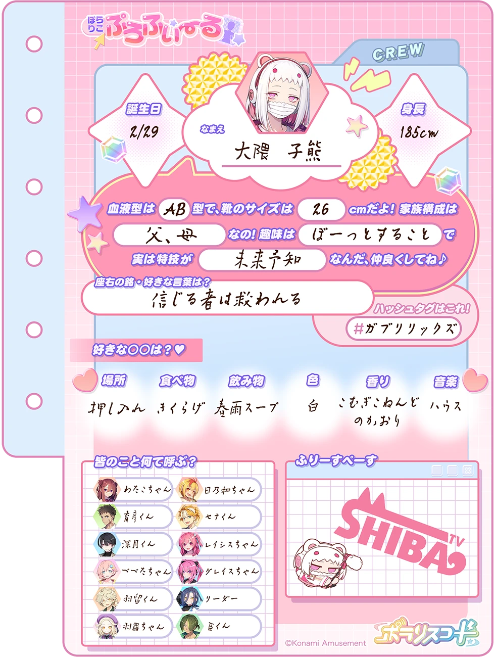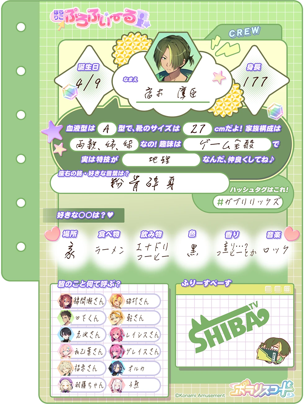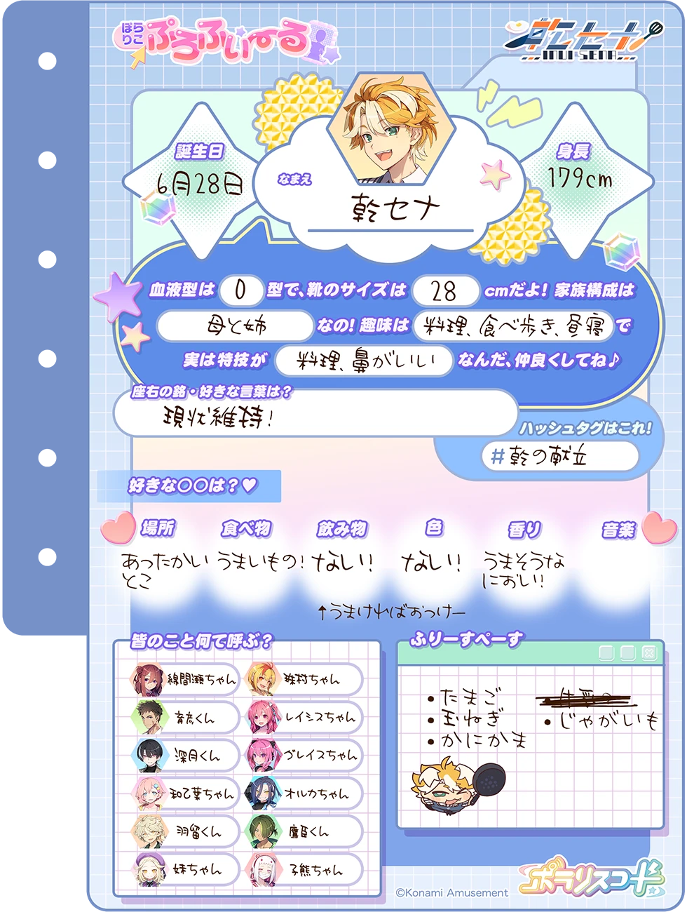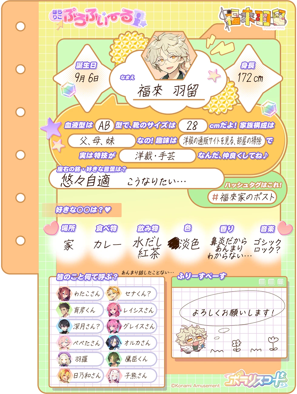 人当たりもよく、しっかり者のようにみえるが、壊滅的に不器用なため身の回りのことが何一つできないのがたまにキズ。